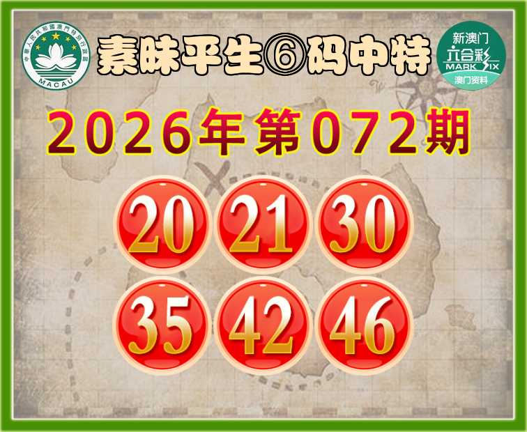 072期:『素昧平生』 🍖⑥码中特🍖【20.21.30.35.42.46】开:46